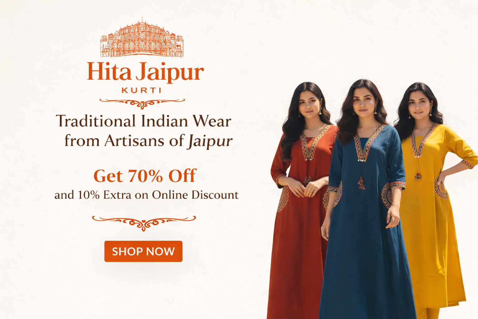 NRI Blue V-Neck Handcrafted Cotton Kurti Set with Dupatta
